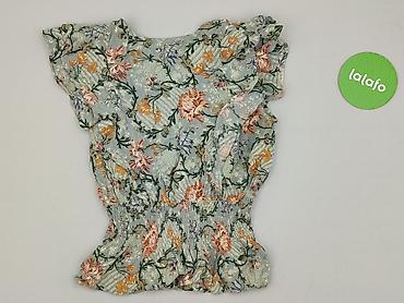 Bluzka damska Reserved, rozmiar 34. - Fason: lekko rozkloszowany dół z falbaną, bez rękawów, z delikatnymi falbankami przy ramionach - Wzór: roślinny/gałązki w odcieniach zieleni, niebieskiego i p...