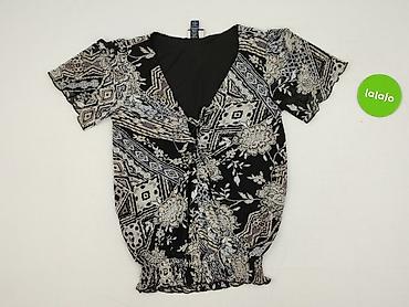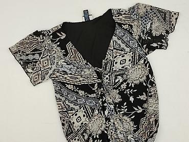 Bluzka damska mk one, rozmiar 8 (UK) - Czarna, zwiewna tkanina z drobnym, kwiatowym printem w odcieniach różu, czerwieni i zieleni - Krótki rękaw z lekkim marszczeniem - Dekolt kopertowy z subteln...Rozmiar: