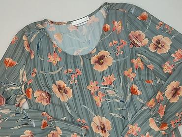 Bluzka damska Reserved, rozmiar S - Fason: luźna bluzka z krótkim, falbaniastym rękawem motylkowym - Kolor: chłodny błękit/szarawy niebieski - Wzór: delikatny, wielobarwny motyw roślinno‑kwiatowy ...