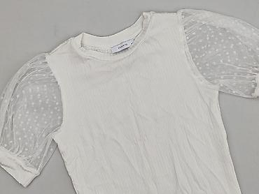 Bluzka damska JANE’S, rozmiar S-M - Kolor: biały/ekri - Krój: lekko kopertowy dół, dekolt w serek - Rękawy: długie z tiulu w groszki, lekko rozszerzane z falbanką - Materiał (metka): 70% poliester...