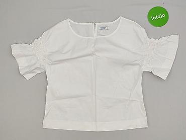 Biała bluzka damska Skue, rozmiar M (EU 38 / US 6) - Fason: krótki rękaw z delikatnymi marszczeniami, dekolt w kształcie litery V z krótką stójką - Zapięcie: guziki z tyłu (perłowe) - Materiał: 10...