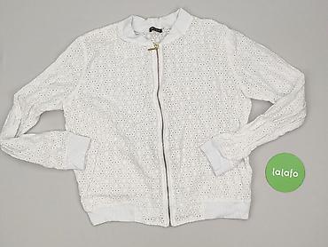 Biała damska bluza/lekka bomberka na zamek błyskawiczny. - Rozmiar: 5XL (metka) - Materiał: 100% poliester - Krój: luźny, raglanowe rękawy - Rękawy z koronkowej, ażurowej tkaniny; elastyczne śc...