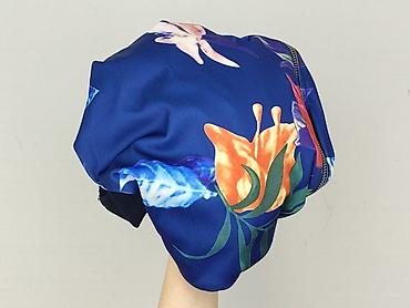 - Kolor/wzór: granatowa baza, wielobarwne kwiaty i liście (żywe odcienie pomarańczu, różu, zieleni, błękitu)