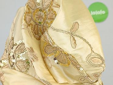 - Bogaty haft roślinny w odcieniach beżu oraz aplikacje z cekinów w kolorze złotym i perłowym