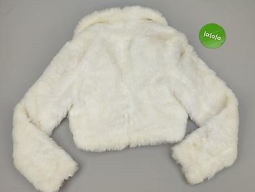 Bolero damskie – białe, krótki rękaw - Krój: krótkie bolerko z przodem zachodzącym na siebie, bez zapięcia - Kołnierz: wysoki/stójka, dekoracyjnie wywinięty - Rękawy: krótkie, lekko poszerzane - D...