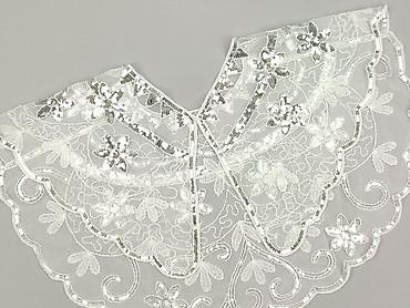 Biała peleryna/bolerko damskie z odkrytym przodem - Krój: lekka, zwiewna peleryna zakładana na ramiona; przód otwarty z dekoracyjnym, kaskadowym układem materiału - Zapięcie: pod szyją na dwie ozd...