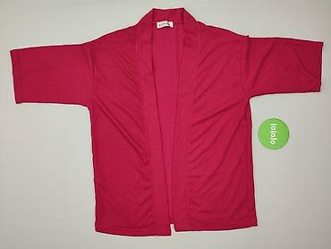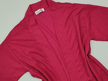 Różowa narzutka/żakiet bez zapięcia dla kobiety - Fason: luźny, otwarty przód bez guzików/zamek, lekko opadające ramiona - Rękawy 3/4 z szerokimi mankietami ozdobionymi dużymi kokardami - Kolor: p...