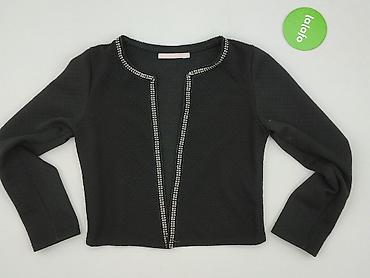 Czarna bluzka/kardigan BONITA, rozmiar M. - Fason: z długim rękawem, głęboki dekolt w kształcie litery V - Ozdoby: dekoracyjna taśma z cekinami i koralikami wzdłuż dekoltu i zapięcia - Zapięcie: n...