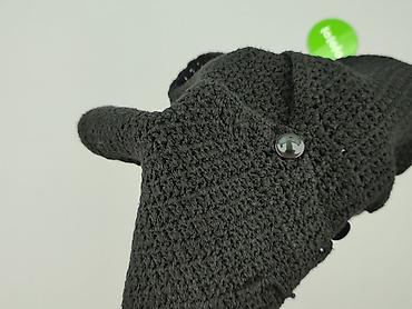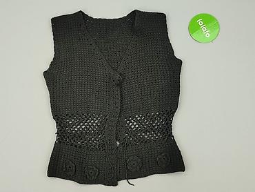 Ażurowy sweter/kardigan damski, czarny - Model: lekki kardigan zapinany u góry na jeden guzik - Krój: prosty, delikatnie taliowany; długie rękawy z lekko zwężanymi mankietami - Materiał: cienka, s...