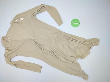 Sukienka damska dzianinowa, beżowa, zapinana na guziki - Fason: dopasowana w górnej części, lekko rozkloszowana od bioder - Dekolt: w kształcie litery V - Rękaw: długi - Zapięcie: rząd guzików na ...
