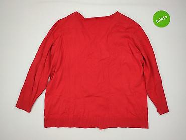 Czerwony kardigan damski na guziki - Krój: dopasowany, dekolt w serek (V-neck) - Zapięcie: trzy guziki z przodu - Rękawy: długie - Wykończenie: szerokie, prążkowane ściągacze przy mankietach i na ...Stan: