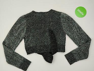 Czarny bolerko/sweter z długim rękawem - Krój: krótkie bolerko do narzucenia na sukienkę lub top - Rękawy: długie, zakończone ściągaczami - Dekolt: w kształcie litery V z delikatnym, prążkowanym w...Rozmiar: