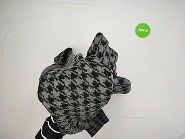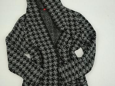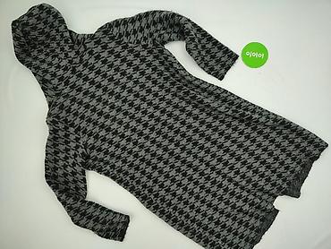 Długi kardigan damski z kapturem, w klasyczny wzór pepitki (czarno-szary).