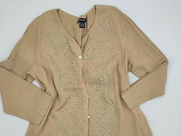 Ażurowy kardigan damski TU - Rozmiar z metki: 16 (UK) - Kolor: beżowo-złoty, z delikatnym połyskiem - Skład materiału: 38% akryl, 33% bawełna, 28% nylon, 1% przędza metaliczna - Fason: krótki kard...
