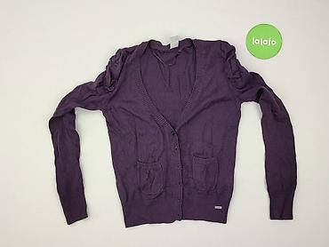Kardigan damski, fioletowy. - Fason: zapinany na 6 dużych guzików z przodu - Kołnierz/stójka: wysoka, miękko układająca się - Rękawy: długie, zakończone ściągaczem - Kieszenie: dwie naszywane z pr...Rozmiar: