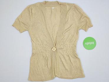 Kardigan damski Reserved, rozmiar S - Kolor: beżowy ze złocistą, połyskującą nitką - Fason: prążkowany, dopasowany, długość do bioder - Dekolt: głęboki V-neck - Zapięcie: na guziki z przodu (4 szt...