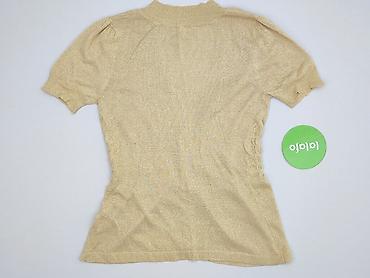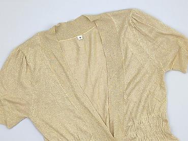 Ażurowy kardigan damski TU - Rozmiar z metki: 16 (UK) - Kolor: beżowo-złoty, z delikatnym połyskiem - Skład materiału: 38% akryl, 33% bawełna, 28% nylon, 1% przędza metaliczna - Fason: krótki kard...
