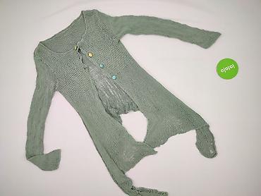 Sweterek/kardigan damski w odcieniu szałwiowej zieleni. - Krój oversize z obniżoną linią ramion, luźne rękawy 3/4. - Otwarty przód bez zapięcia, lekko opadająca linia dołu z delikatnym wcięciem p...