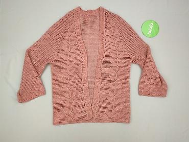 Różowy kardigan damski, rozmiar S - Krój: długi, bez zapięcia (otwarty przód) - Kolor: pudrowy róż - Materiał: cienka, przewiewna dzianina o luźnym splocie - Rękawy: długie, zakończone ściągaczami...