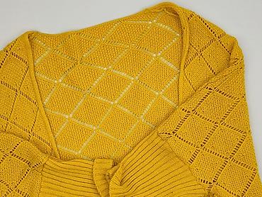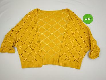 Żółty kardigan damski na guziki - Krój: klasyczny, z okrągłym dekoltem i zapięciem na rząd jasnych guzików - Materiał: 100% akryl (etykieta: “100% AKRYL”) - Rozmiar z metki: L - Rękawy: długie, wy...