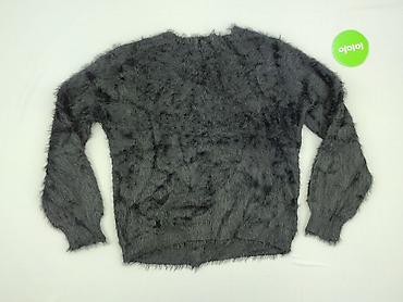 Czarny damski kardigan/sweter z długim rękawem, rozmiar XL. - Fason: asymetryczny, zapinany/wiązany na przód z ozdobną klamerką po boku - Kołnierz: szeroki, szalowy, z grubszym, warkoczowym splote...