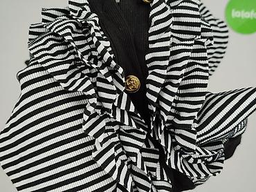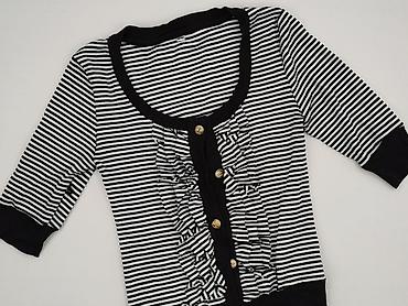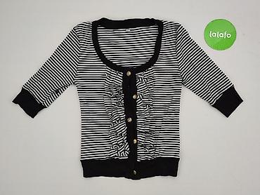 Damski kardigan Equipe, rozmiar XS. - Klasyczne, szerokie pasy w kolorze czarnym i białym - Fason zapinany na duże guziki z przodu - Głęboki dekolt w serek z prążkowaną plisą - Długie rękawy, elas...