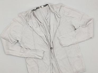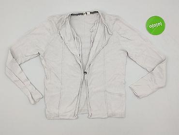- Fason: długie rękawy, otwarty przód z delikatną plisą, subtelne pionowe ażury wysmuklające sylwetkę, ściągacz na dole
