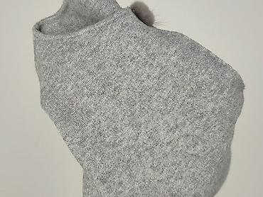 Sweter damski, szary, dzianina prążkowana. - Fason: kardigan z wysokim, otulającym kołnierzem/szalowym wywinięciem. - Zapięcie: pojedyncza klamra/zatrzask przy kołnierzu, przód układa się w ele...
