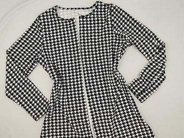 Żakiet/kardigan damski w pepitkę - Krój: krótki, prosty, bez zapięcia, zaokrąglone wykończenie dołu i lamówka w kolorze czarnym - Wzór: klasyczna czarno-biała pepitka (houndstooth) - Rękawy: długi...Stan: