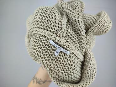 Damski kardigan z kapturem, beżowo-kremowy, z frędzlami - Fason: długi kardigan/ponczo typu open front (bez zapięcia), swobodny krój - Kaptur: obszerny, miękko układający się - Detale: dekoracyjne...