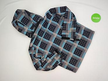 - Wzór: krata w odcieniach granatu, szarości i turkusu