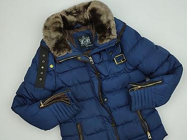 Damska pikowana kurtka zimowa z kapturem, rozmiar S - Kolor: granatowy - Krój: lekko taliowany, pikowanie w kratkę - Rozmiar z metki: S (EU/US) - Materiały: - wierzch: 70% bawełna, 30% poliester...Rozmiar: