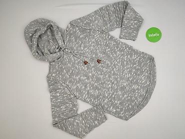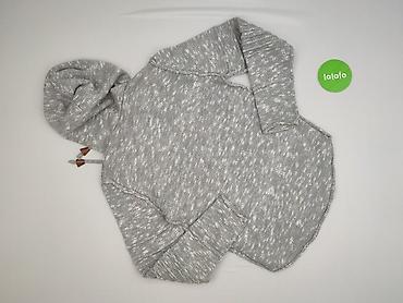 - Fason: sweter z kapturem, ściągany sznurkiem zakończonym brązowymi nasadkami; dłuższy, zaokrąglony dół; długie rękawy