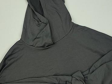 Damska bluza z kapturem, szara melanż. - Materiał: cienka, miękka dzianina (przyjemna w dotyku, elastyczna). - Fason: swobodny, lekko wydłużony. - Kaptur z kontrastową czarną lamówką. - Dekoracyjn...