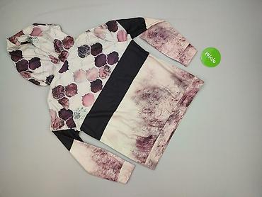 - Wzór/kolor: górna część w geometryczny motyw z kwiatowymi printami w odcieniach różu, bordo i fioletu; środkowy pas w kontrastowej czerni; dół i rękawy z efektem „wash”/ombré w różowo-burgundowych tonach