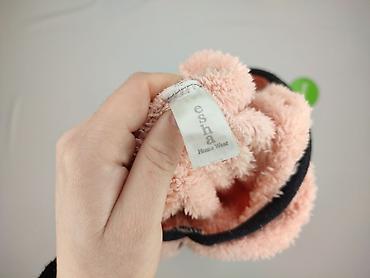- Miękki, pluszowy materiał typu „miś/śnieżynka” w kolorze pudrowego różu; przy mankietach kontrastowe, czarne ściągacze.