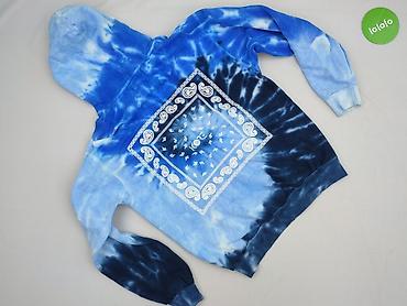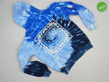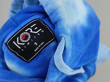 Bluza damska z kapturem KORE Limited, rozmiar S, Made in USA. Model w stylu tie‑dye w odcieniach niebieskiego z efektem „burst”. Z przodu małe logo/napis KORE, z tyłu duży nadruk w stylu bandany (biały wzór paisley w kwadratowej ramce).