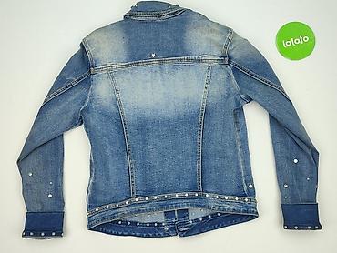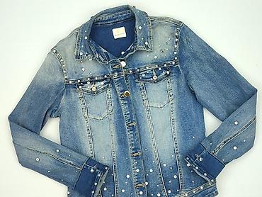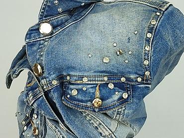 Damska kurtka jeansowa z ozdobnymi dżetami i perłowymi nitami
