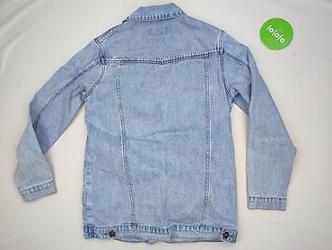 Damska kurtka jeansowa, jasnoniebieska, rozmiar S. - Klasyczny fason z kołnierzem i zapięciem na metalowe napy - Przetarcia i cieniowania typu washed dla efektu vintage - Dwie kieszenie piersiowe ...
