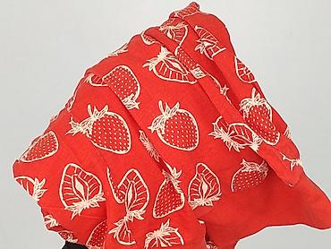- Wzór: truskawki i przekrojone owoce na czerwonym tle
