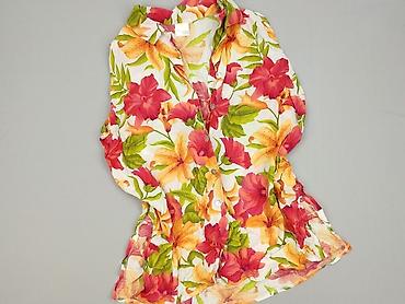 Koszula damska ISTAY, rozmiar S - Krój: krótka, luźna, zapinana na guziki, z kołnierzykiem - Rękaw: krótki - Wzór: tropikalny – liście, hibiskusy i ptaki (odcienie różu, czerwieni, zieleni, turkus...Rozmiar: