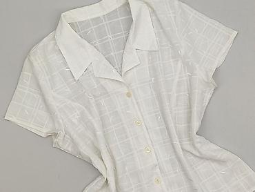 Biała koszula damska z krótkim rękawem – XXL - Marka/etykieta: Collection (rozmiar XXL) - Krój: luźny, zapinana z przodu na guziki oblekane tkaniną - Kołnierzyk: klasyczny, ozdobiony koronkową apl...