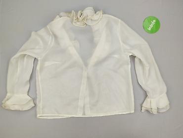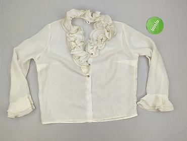 Biała, lekka damska koszula z krótkim rękawem i zapięciem na guziki. Delikatnie transparentna tkanina, dekoracyjne marszczenia i falbanka przy listwie guzikowej nadają elegancki, kobiecy charakter....Stan: