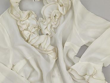 Damska koszula YOПPA (rozmiar 44) - Kolor: kremowy/śmietankowy, z delikatnym, lekko połyskującym, fakturowanym wykończeniem - Krój: zapinana z przodu na guziki, długie rękawy - Kołnierz: wysoki st...