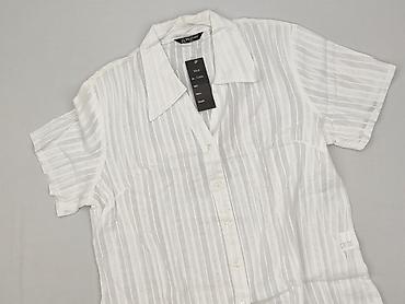 Bluzka damska z krótkim rękawem, biała, zapinana na guziki. - Krój: koszulowy z kołnierzykiem, lekko taliowana - Rękaw: krótki - Zapięcie: rząd jasnych guzików z przodu - Wzór/materiał: półprzezr...Rozmiar: