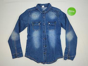 Koszula damska denimowa, rozmiar 36 - Fason: koszula jeansowa ze sztywnym kołnierzykiem - Zapięcie: napy w kolorze srebrnym na całej długości oraz przy mankietach - Kieszenie: dwie naszywane kiesz...