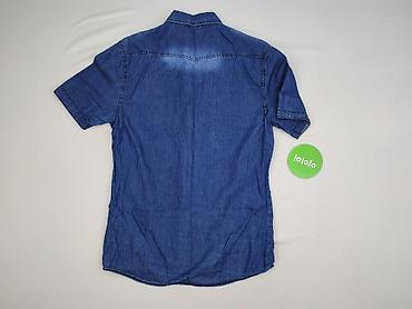 Damska koszula jeansowa z krótkim rękawem - Fason taliowany, lekko dopasowany, długość do bioder - Klasyczny kołnierzyk, zapięcie na perłowe napy na całej długości - 2 kieszenie na piersi z klapka...