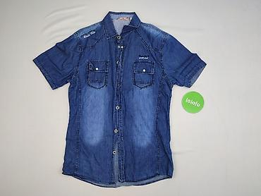 Damska koszula jeansowa z krótkim rękawem - Fason taliowany, lekko dopasowany, długość do bioder - Klasyczny kołnierzyk, zapięcie na perłowe napy na całej długości - 2 kieszenie na piersi z klapka...Rozmiar:
