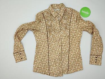Damska koszula z długim rękawem, rozmiar L, wzór roślinny - Fason: klasyczna koszula zapinana na guziki, kołnierzyk, mankiety na guziki - Kolorystyka: górna część w odcieniu butelkowej zieleni/tea...