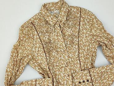 Damska koszula/bluzka z długim rękawem, zapinana na guziki. - Wzór: duże, roślinne motywy w odcieniach musztardowego, czerni, beżu i rudości; lekko fakturowana tkanina z melanżowym efektem. - Kró...